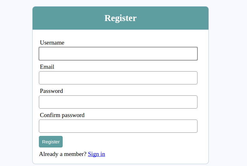 Si actualizamos la página register.php en el navegador, obtenemos esta belleza: