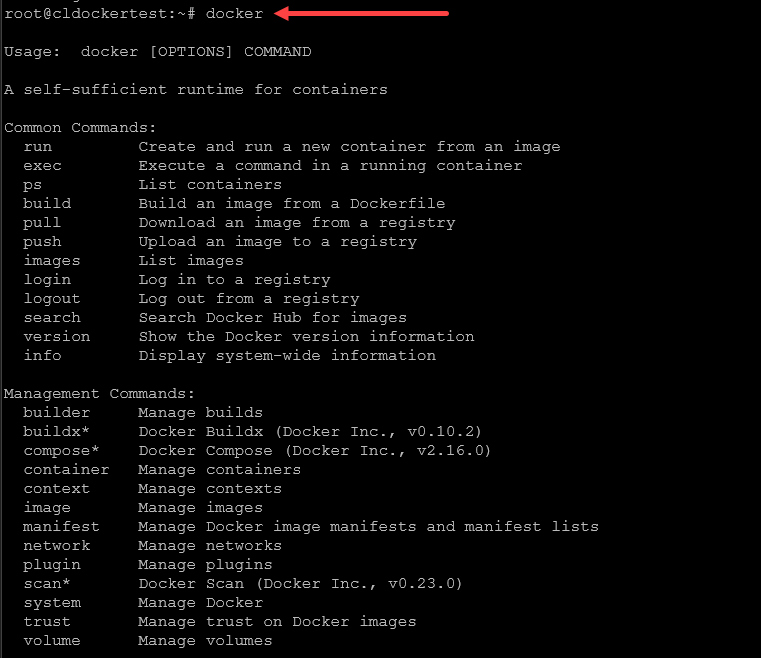 Para ejecutar los comandos de la CLI de Grafana dentro de un contenedor de Grafana en ejecución, use el ejecutivo acoplable dominio. Por ejemplo, para enumerar los complementos instalados:
