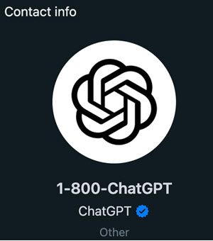 Abierto AI dice que puedes verificar la insignia verificada de ChatGPT para WhatsApp y el número correcto, que es 1-800-242-8478.