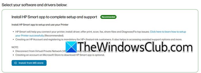 Hemos notado que la mayoría de las personas que enfrentan este problema son usuarios de impresoras HP. Están tratando de instalar el software recomendado para imprimir, pero debido a que su sistema está basado en el brazo, no lo hacen, ya que falta el controlador de plug and play. En ese caso, le recomendamos que instale una versión anterior de la aplicación HP Smart hasta que HP lanza una solución en su nueva versión. Pero por ahora, ve a soporte.hp.com y descargue la versión enumerada. Una vez hecho esto, intente y vea si puede imprimir.