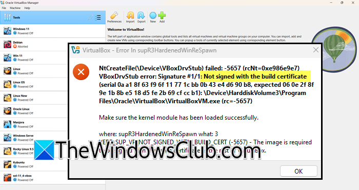 VirtualBox no firmado con el certificado de compilación [Fix]