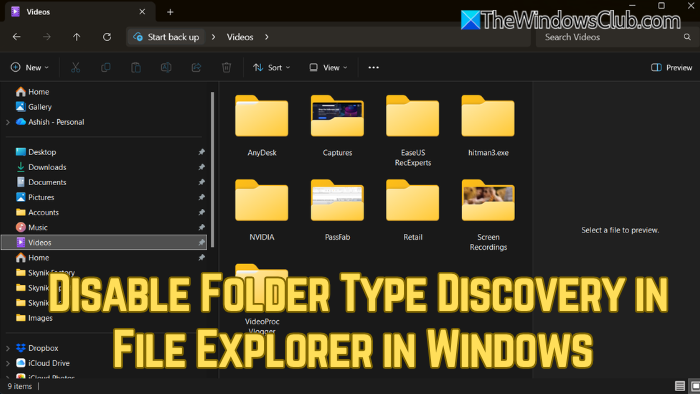 Deshabilite la detección de tipos de carpeta en el Explorador de archivos en Windows 11